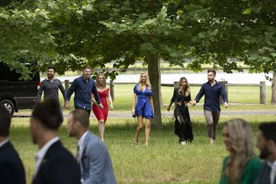Meanwhile, it's kerry and johnny's wedding day, and yes six strangers arrive in a van.